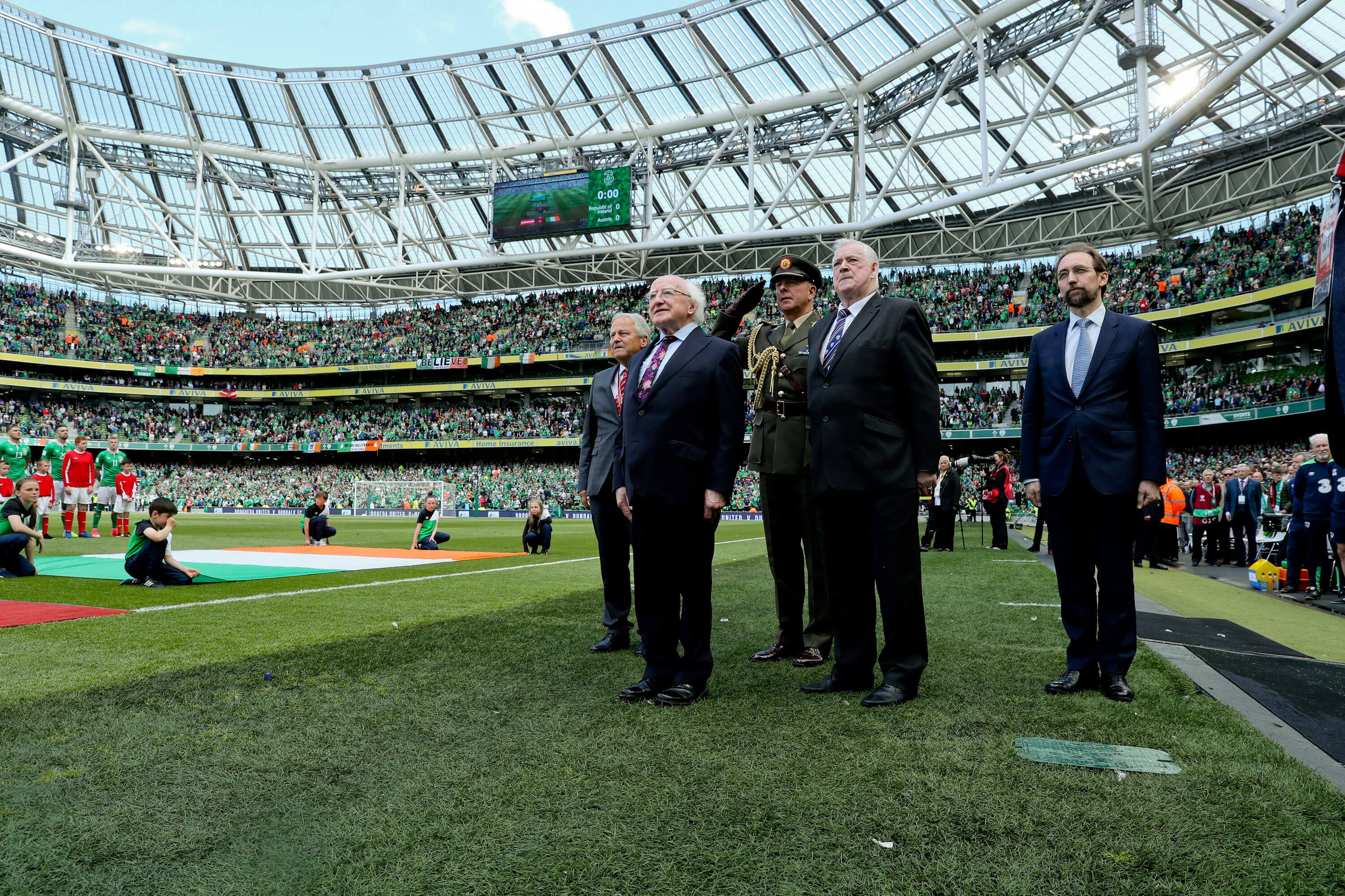 The President and the UN High Commissioner attended the Ireland v. Austria World Cup qualification match, and during the match highlighted the importance of respecting and fulfilling everyone's human rights.