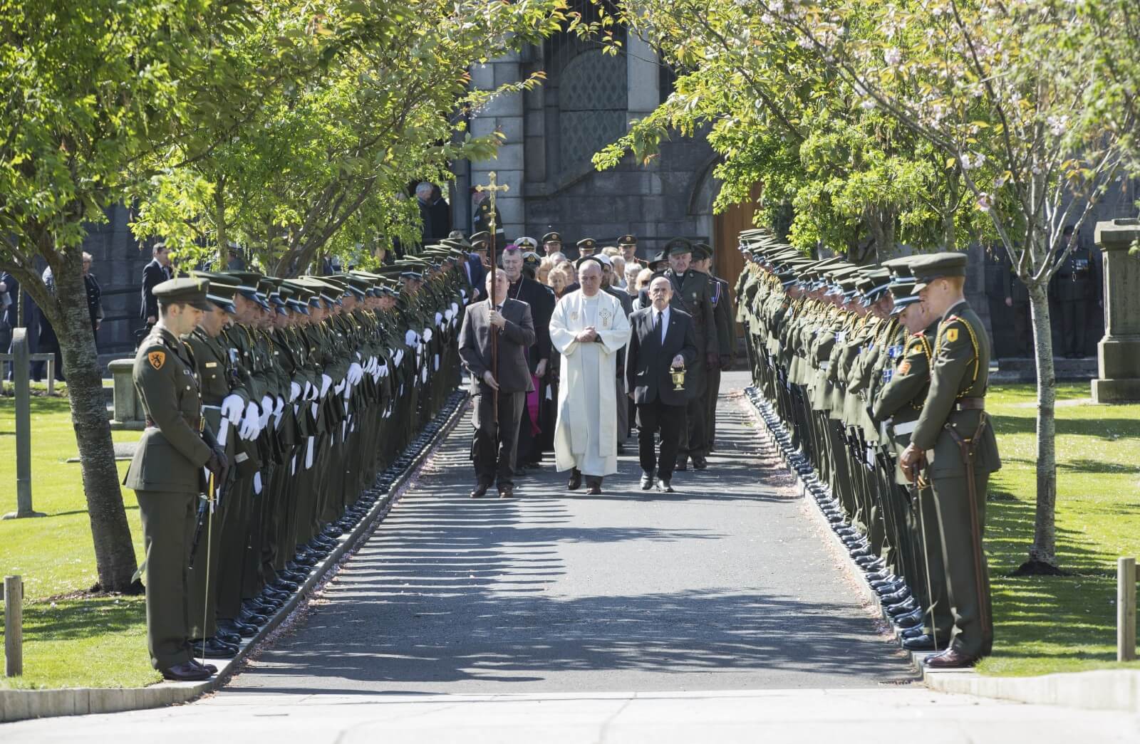 The ceremony was hosted by the Minister for Defence and consisted of a Requiem Mass and ceremonies at the grave for the 1916 Leaders.
