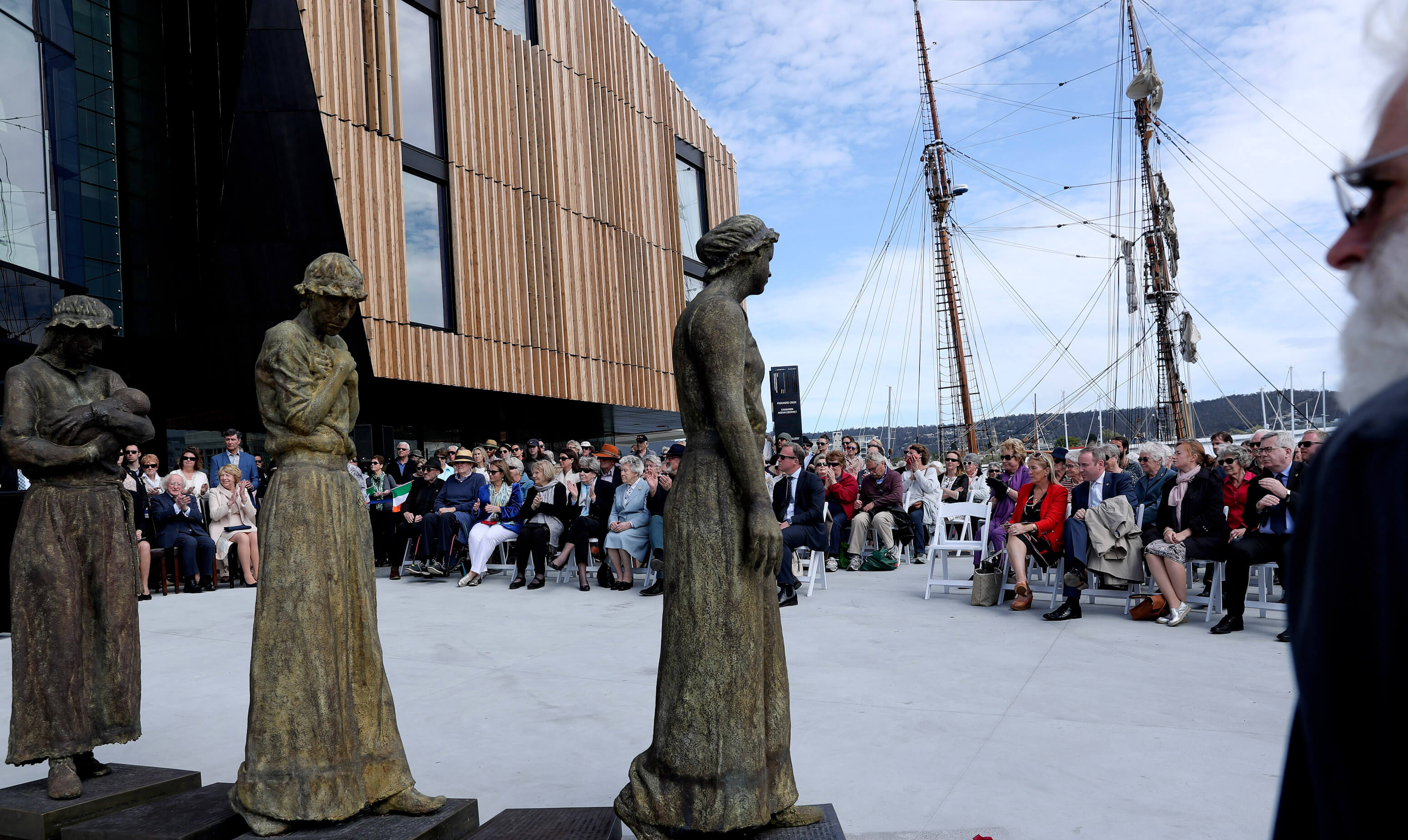 In Hobart, nocht an tUachtarán dealbha nua de chuid Ronan Gillespie, a dhéanann comóradh ar na mná bochta a seoladh chuig an Tasmáin.