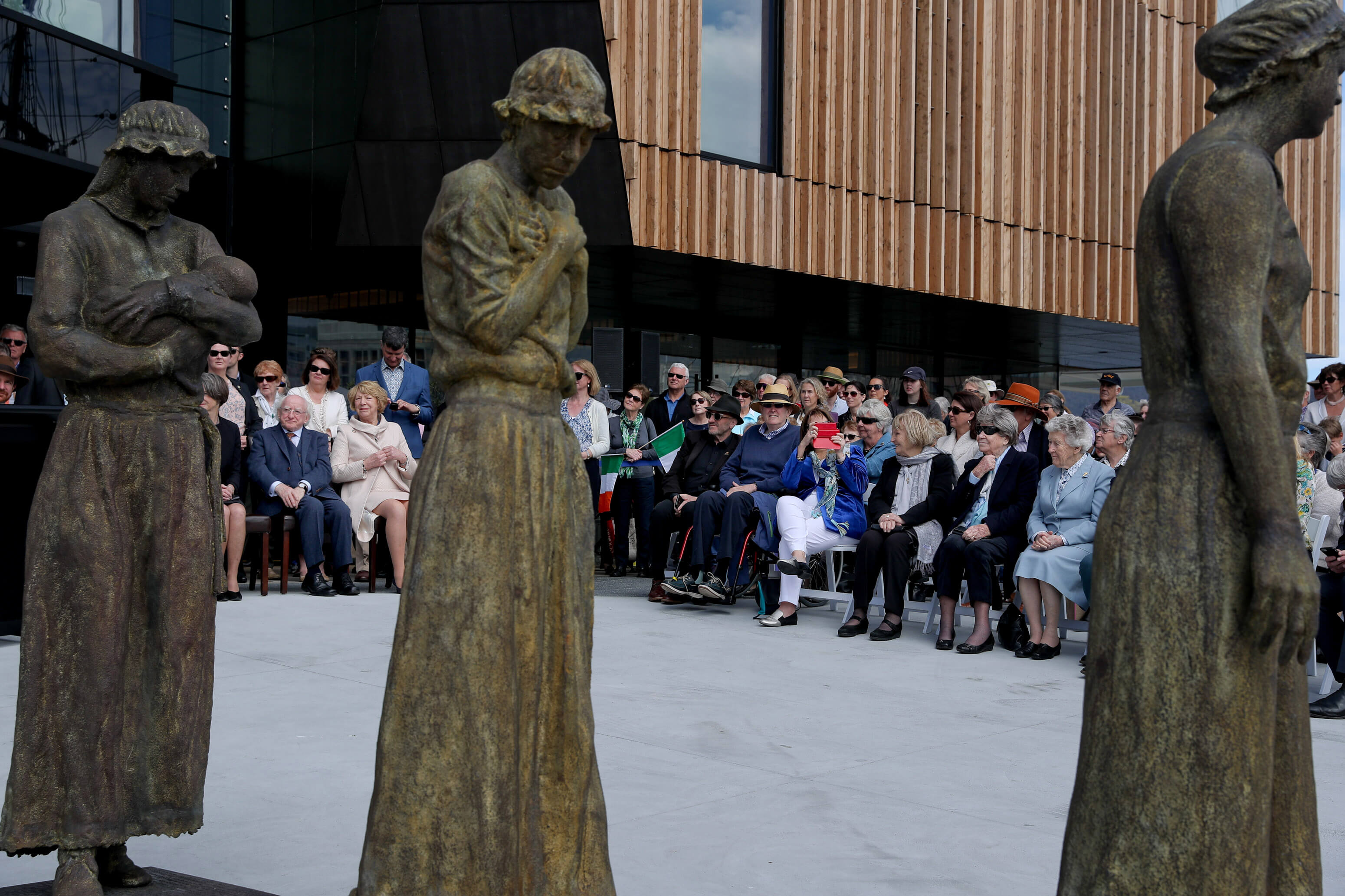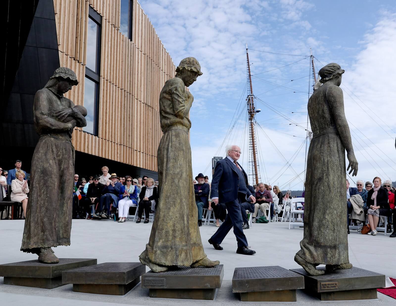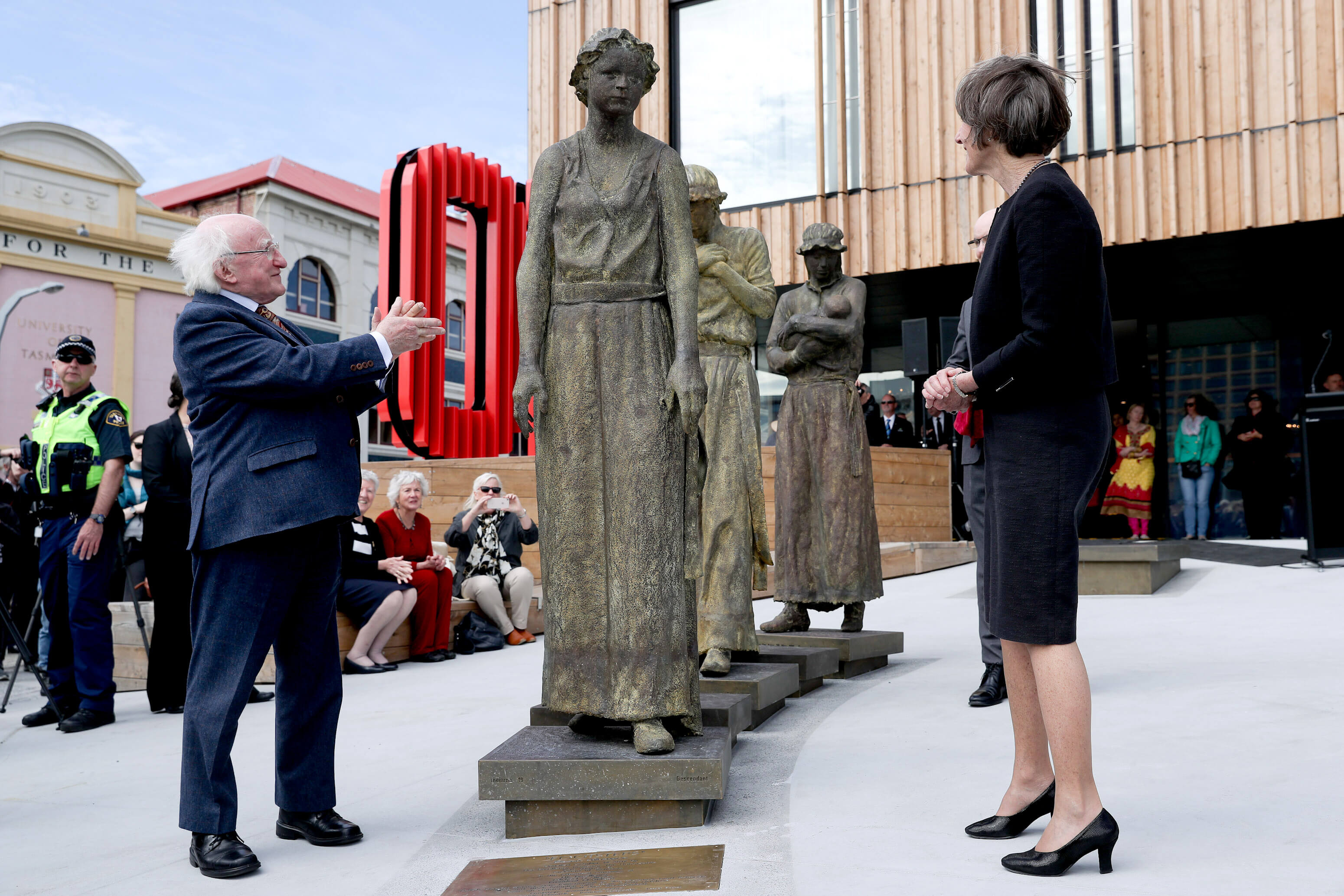 Ina aitheasc, thug an tUachtarán Ó hUigínn chun cuimhne na mílte bean a seoladh chuig an Tasmáin as Éirinn agus as an mBreatain mar phionós. Dúirt an tUachtarán gurbh “íospartaigh de chóras breithiúnach dian, a thug tús áite don réadmhaoin thar bheatha na ndaoine,  a bhí iontu”.