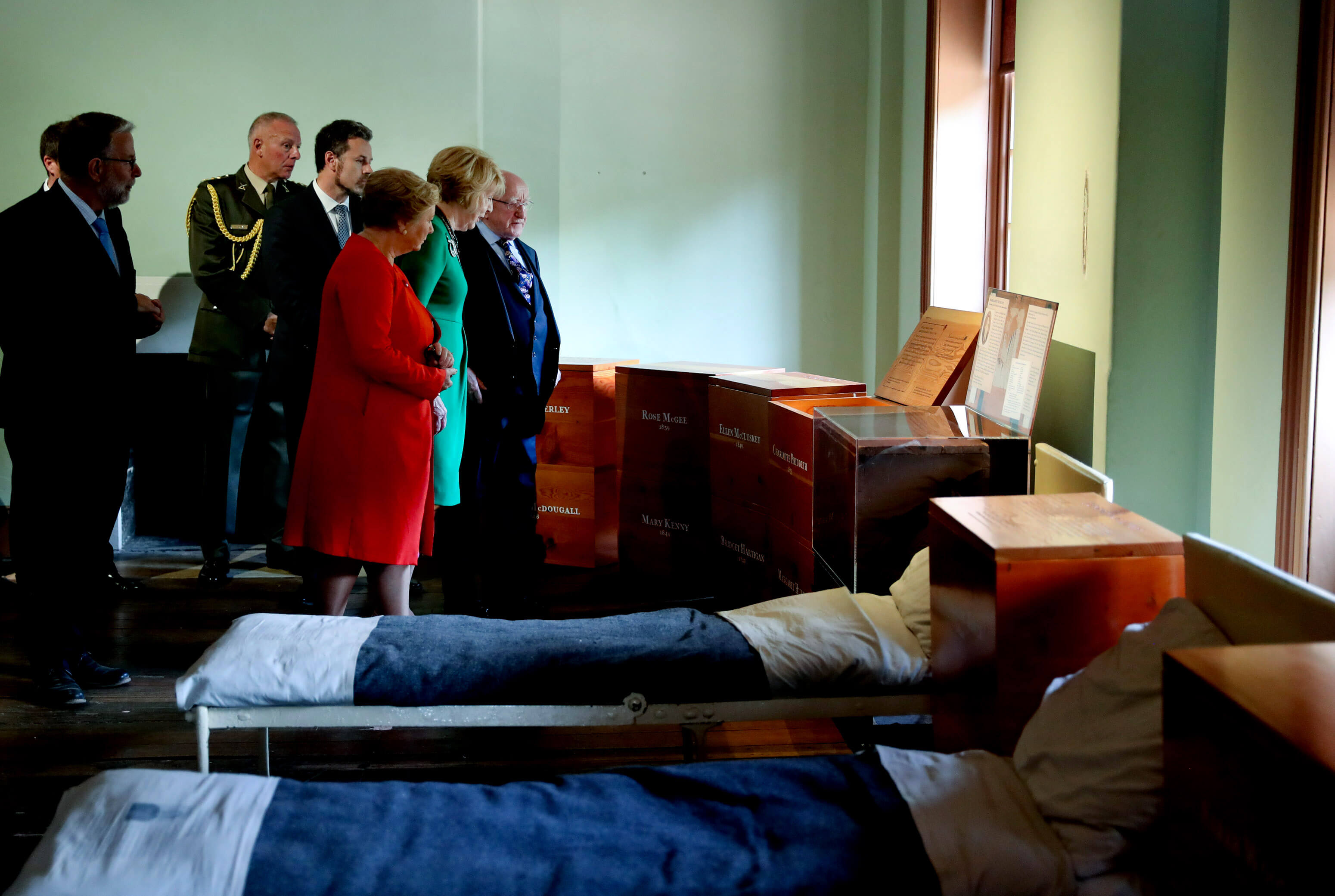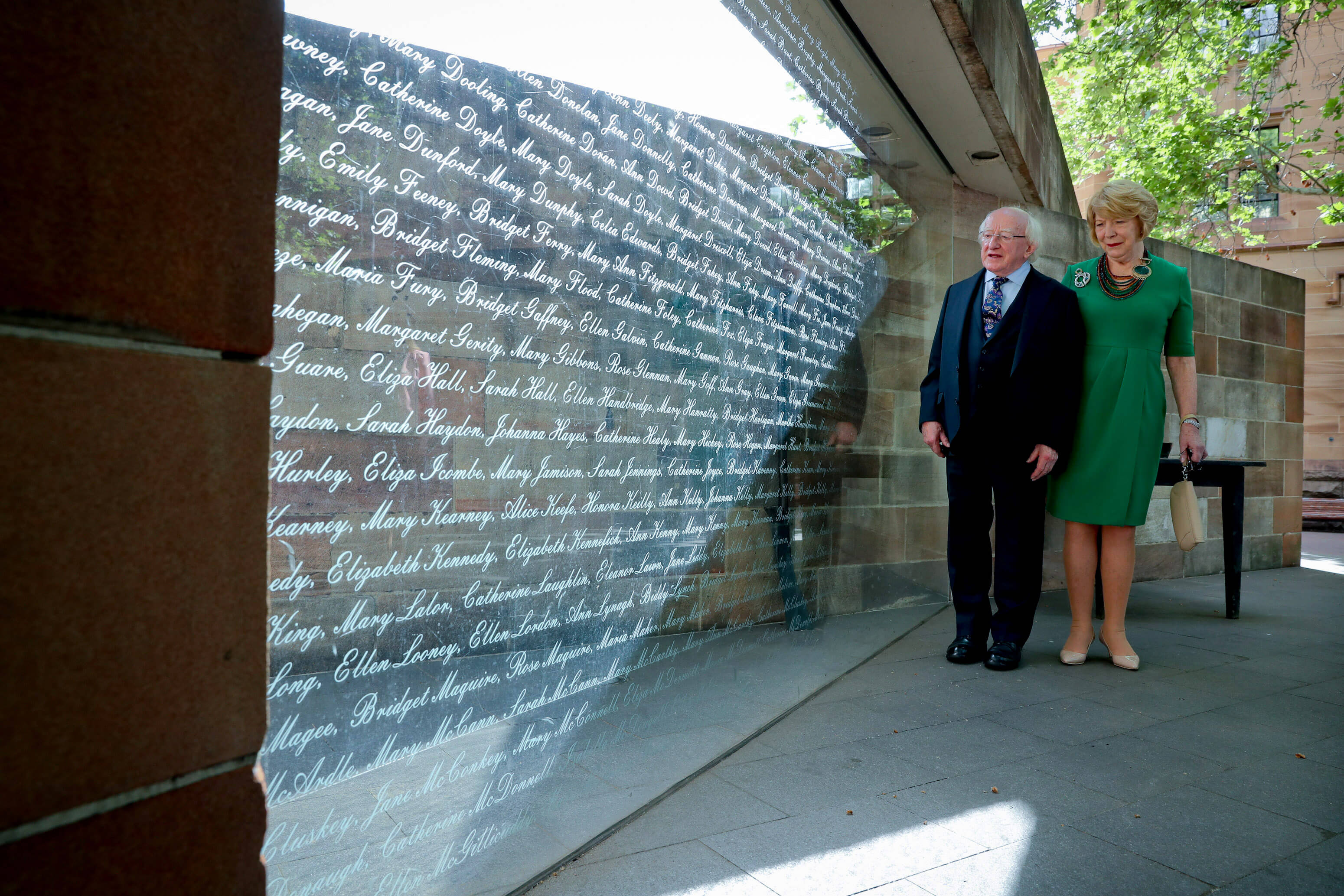 Leag an tUachtarán bláthfhleasc ag leacht cuimhneacháin na hAstráile ar an nGorta Mór.