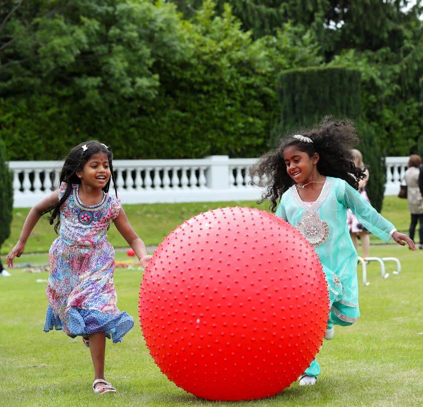 Fáiltiú ar scáth an Uachtaráin, agus Sabina Higgins, le Cóisir sa Gháirdín