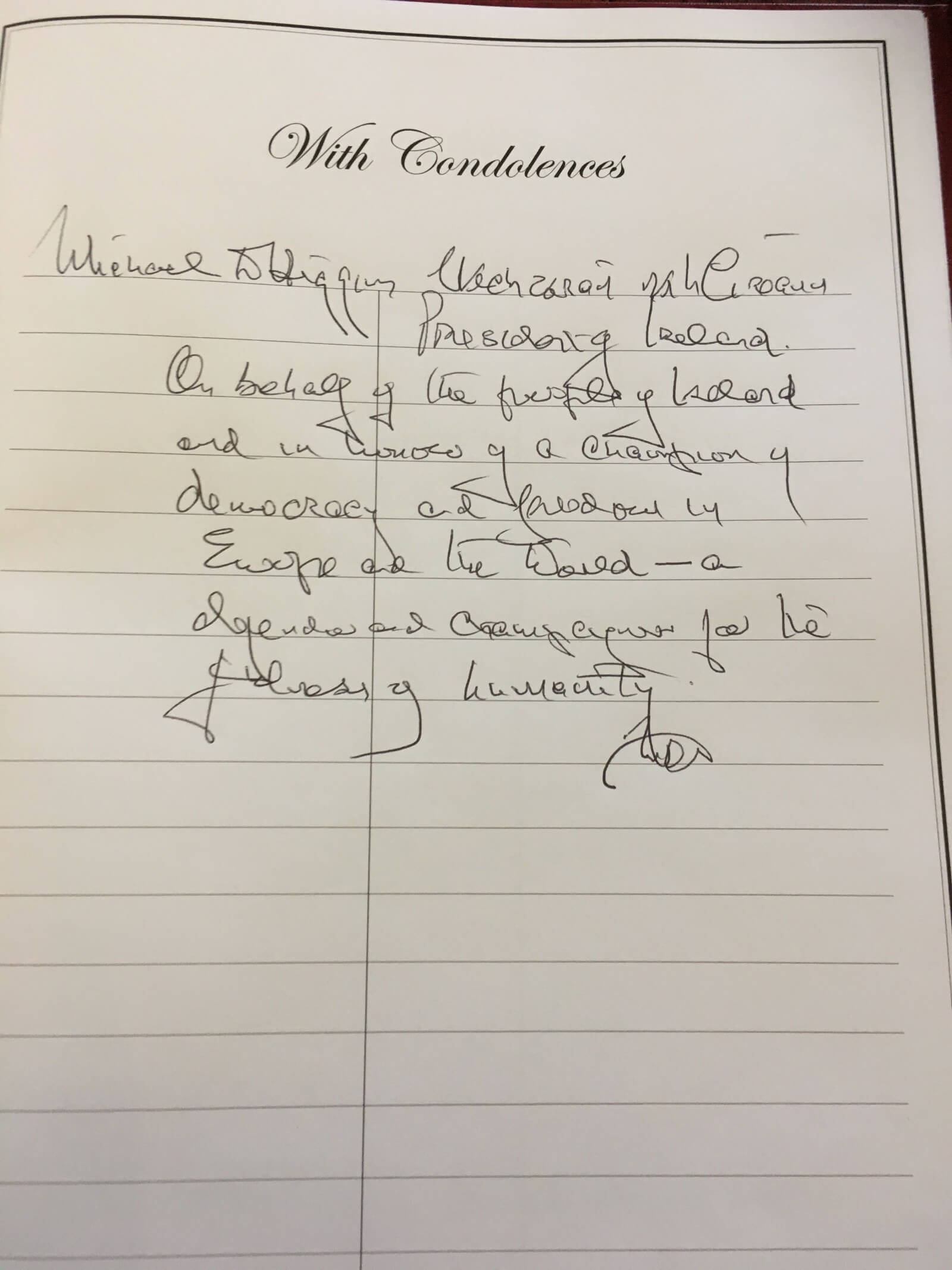 Ar an 10 Eanáir, shínigh an tUachtarán Micheál D. Ó hUigínn leabhar comhbhróin d'Iar-Phríomh Aire agus Iar-Uachtarán na Portaingéile Mario Soares