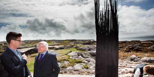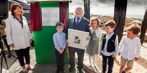 President unveils a piece of public art by the late Edward Delaney