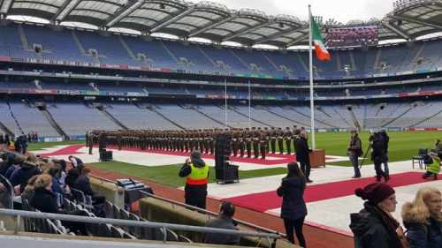 President gives the opening address at the Schools Irish Flags Presentation Ceremony