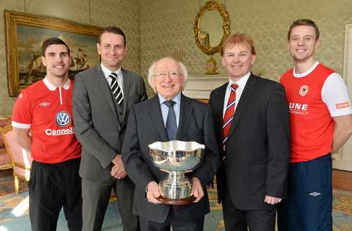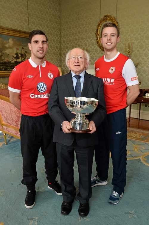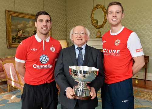 St. Patricks Athletic and Sligo Rovers Captains meet the President of Ireland Michael D. Higgins