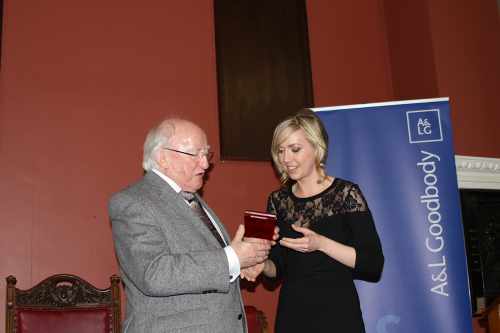 President is presented with the Trinity Praeses Elit Award by Dublin University Law Society
