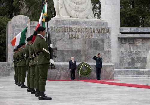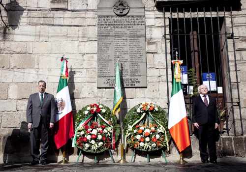 President lays a wreath at the Memorial to the Batallón de San Patricio, Mexico City