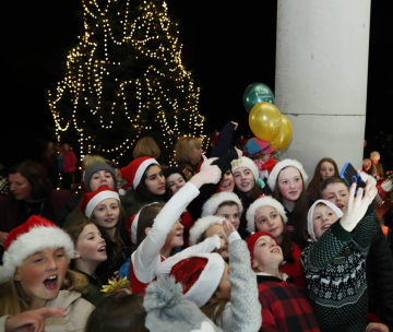 Luana Horan (9) as she points to the top of the tree after the President had switched on the Christmas tree lights -