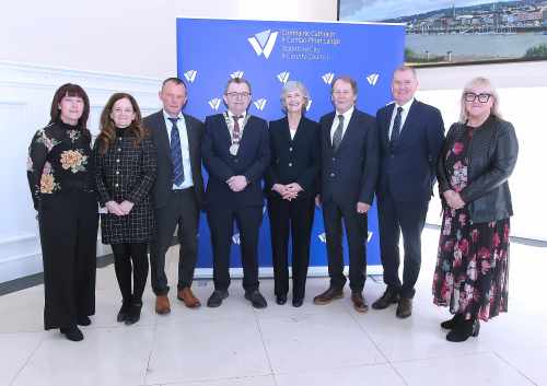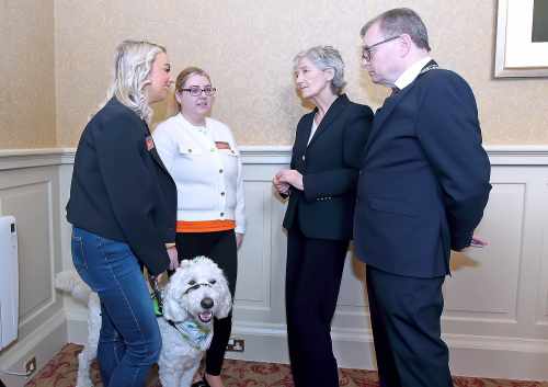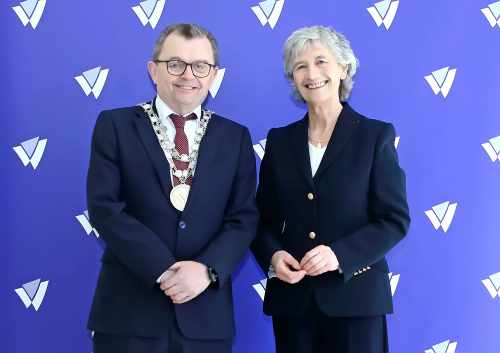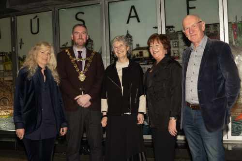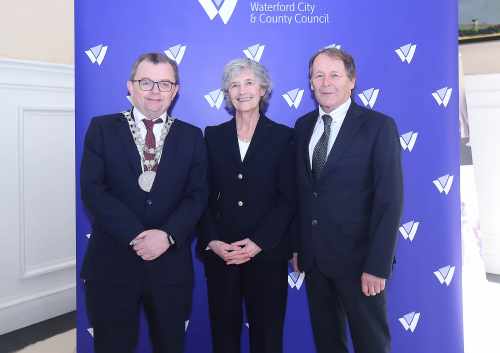 Freastalaíonn an tUachtarán ar fháiltiú cathartha atá á óstáil ag Méara Phort Láirge