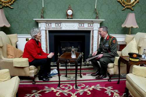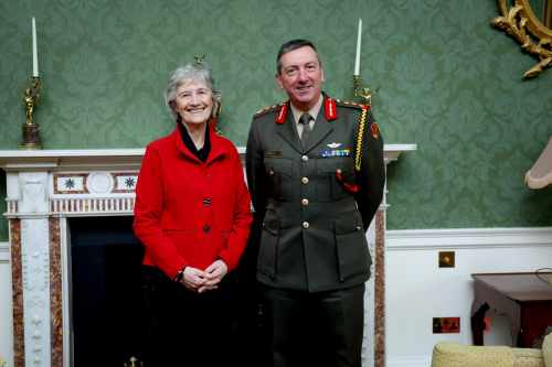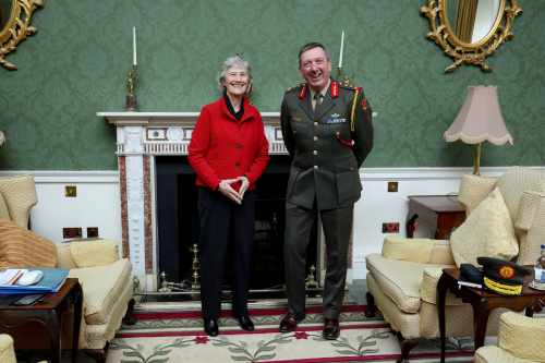 Buaileann an tUachtarán le Leifteanant-Ghinearál Rossa Mulcahy