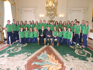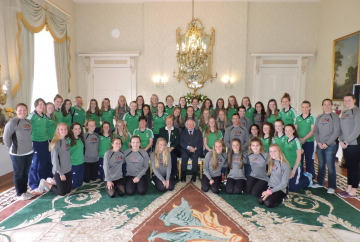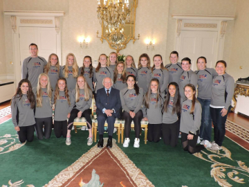 President receives the Irish and USA under 17 girls’ hockey teams