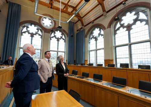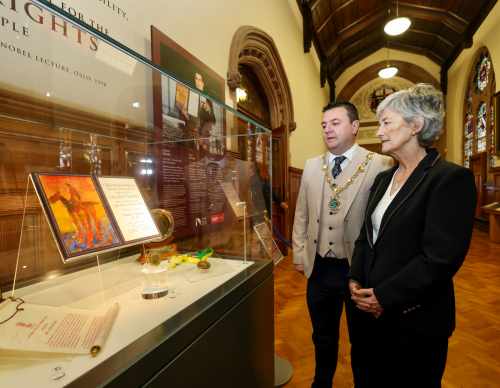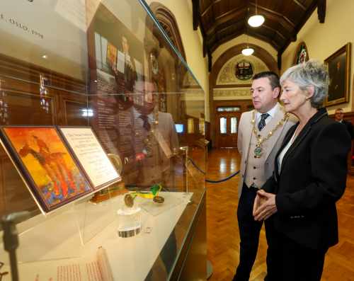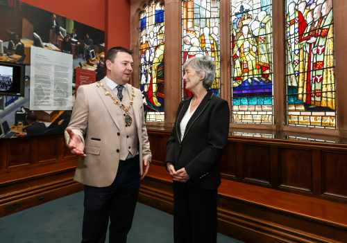 Freastalaíonn an tUachtaran Connolly ar Fháiltiú Cathartha i Guildhall Doire